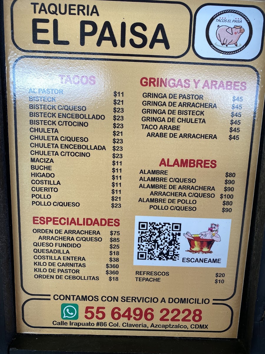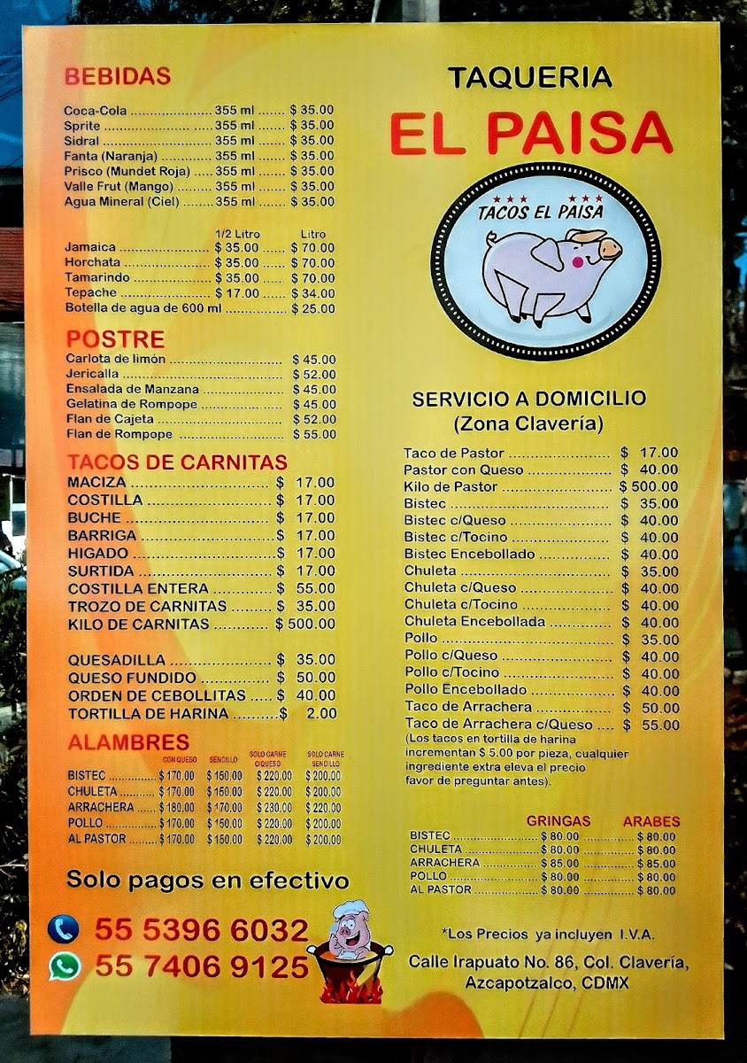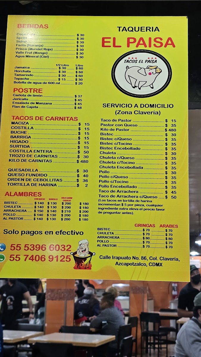 Welcome to Taqueria El Paisa de Claveria, a delightful culinary haven nestled at Irapuato 70 esquina in Claveria, Azcapotzalco, Mexico City. This taqueria has quickly garnered a reputation for serving some of the best tacos in the area, where tradition meets flavor in every bite. With its strategic location surrounded by an array of dessert stalls, you’re in for a treat that extends beyond savory dishes.